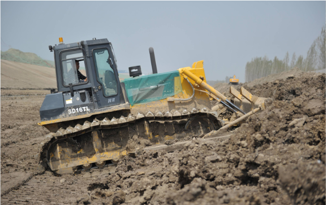 十幾輛山推SD16TL推土機在運河河道內作業(yè),“馬力大、省油、駕駛室還舒服”,推土機駕駛員毫不掩飾的夸贊這些推土機。SD16TL推土機超寬的三角型履帶避免了機器在軟土、濕地、沼澤地帶等松軟物料作業(yè)場所作業(yè)時的下陷,在河道拓寬、清淤等水利工程施工中具備無可比擬的作業(yè)能力。