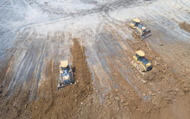 國內(nèi)西南某金屬礦排土場施工機群作業(yè),山推推土機以動力足、質(zhì)量好、效率高、故障率低贏得該礦山青睞,多次購買山推推土機。目前,該排土場使用多臺多種系列山推機型。