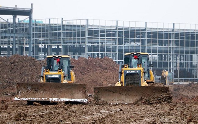 山推成套建筑設(shè)備在城市建設(shè)項目中推土作業(yè)