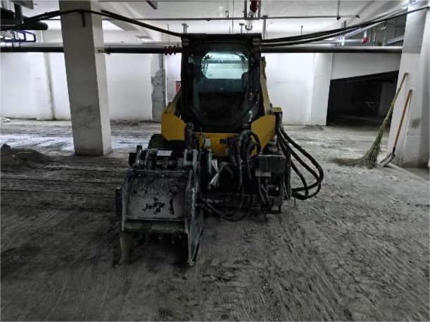 該小區(qū)地處市區(qū)核心板塊,周邊配套完善,地庫(kù)總面積約3萬(wàn)平方米,整體為水泥硬化地面。為滿足后續(xù)自流平地坪施工的需求,地面必須經(jīng)過(guò)銑刨處理,確保材料與基礎(chǔ)面充分貼合。此前,客戶主要采用人工手推式銑刨鼓進(jìn)行處理,效率低、粉塵大、勞動(dòng)強(qiáng)度高,難以滿足項(xiàng)目對(duì)施工進(jìn)度和質(zhì)量的一致性要求。