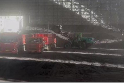 此次投運的11臺LE70-X5裝載機于2025年5月陸續(xù)抵達現(xiàn)場,主要負責推煤、堆垛和裝卸工序。進口煤炭經(jīng)運輸?shù)诌_煤棚后,由裝載機完成卸煤與推堆作業(yè),再經(jīng)洗選環(huán)節(jié)處理后重新裝車外運。設備日均工作時長超過12小時,其中首批6臺車已累計接近1500小時,其余5臺也穩(wěn)定運行超600小時。實踐證明,LE70-X5在高強度、長時間連續(xù)作業(yè)中表現(xiàn)優(yōu)異,得到施工方的一致認可。