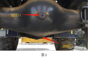 6、 工作完成后,將車輛停平穩(wěn),拉緊手制動(dòng),將前后橋的放油塞(圖2)堵拆下,放出橋包里的油液,用備用桶收集并妥善處理。將塞堵清理干凈。